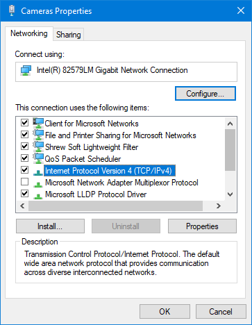 ▪In the available items list, select the ‘Internet Protocol V4 (TCP/IPv4)’ entry: