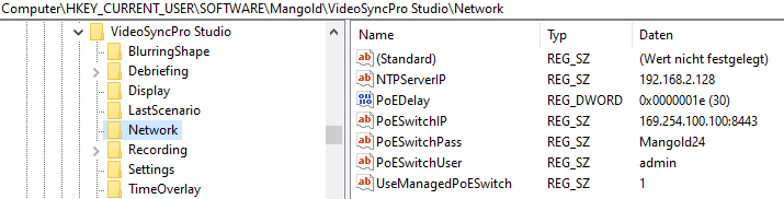 ▪Navigate to Computer\HKEY_CURRENT_USER\Software\Mangold\VideoSyncPro Studio\Network.