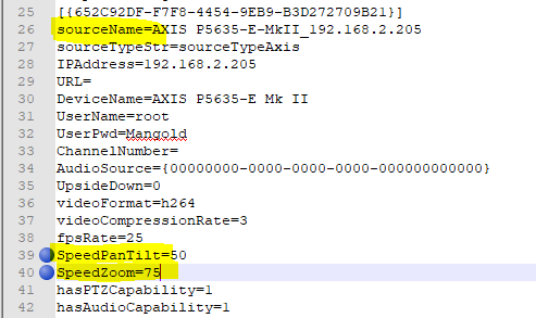 ▪Add the variables SpeedPanTilt and SpeedZoom and the required new values in %.