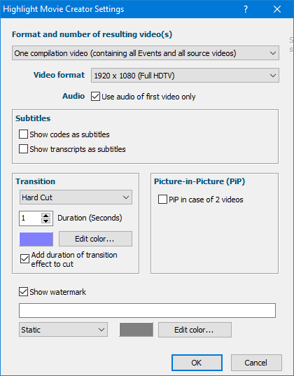 The now appearing settings dialog allows you to customize your output. You can choose from four different types of result videos and other parameters.