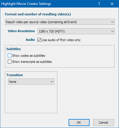 Note: Transitions are not available if you select the output option that creates single snippets per Event.