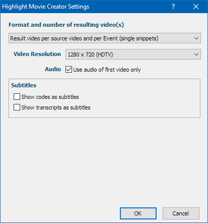oResult video per source video and per Event (single snippets) - Creates a single video for each selected Event for each source video separately.